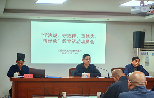 郑文理强调,一是始终坚定政治立场,要以党的二十届四中全会精神为指引,秉持爱党爱国爱教的思想信念,系统推进我国宗教中国化三明实践,推进我市宗教与社会主义社会相适应,将学习成果转化为推动宗教和顺、民族和睦、社会和谐的实际行动,为建设三明两岸融合发展示范区、革命老区高质量发展示范区共同奋斗。二是始终坚持法治原则,要树立“国法大于教规”的底线原则,提升宗教“三无”意识,深化拓展“五进”宗教活动场所工作。持续开展“三经”中国化交流活动,深入挖掘教义教规中的积极理念,与中华优秀传统文化和社会主义核心价值观相融合,以群众通俗易懂的方式传播正能量。三是始终坚守信仰初心,要严格遵守国家法律法规与教义教规,要以“政治上靠得住、宗教上有造诣、品德上能服众、关键时起作用”的“四条标准”为标尺,树立良好形象,要与“学法规、守戒律、重修为、树形象”教育活动结合起来,传承爱党爱国爱教优良传统,主动参与乡村振兴、生态保护、公益慈善等社会事务,主动融入宗教和顺大局。